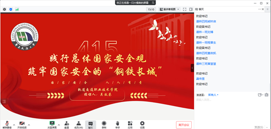 以习近平总书记“安而不忘危,存而不忘亡,治而不忘乱”的名言开场,吴效葵向各位同学讲解了总体国家安全观的产生背景,内涵特征以及蕴含意义。当前正处于世界百年未有之大变局,国际形势复杂多变,国内危机与机遇并存,作为新时代的新青年,必须深刻认识国家安全内涵外延、内外因素的复杂变化;必须深入了解我国国家安全方面的各项政策法规;必须牢记“生于忧患,死于安乐”的千年古训,始终以强烈的忧患意识、使命意识和责任意识鞭策自己,深刻领悟中央的战略意图,以国家核心安全需要为至高,主动作为,勇于担当。