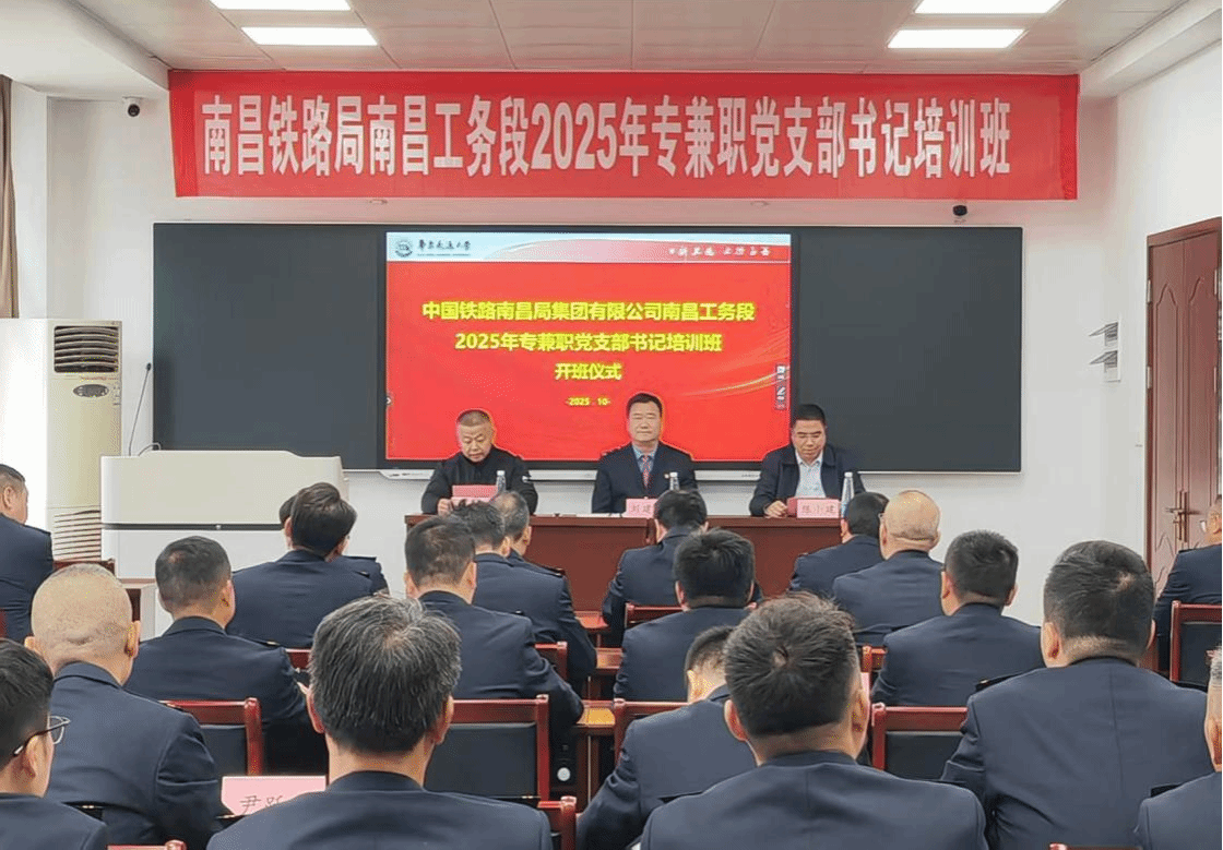 10月28日上午,中国铁路南昌局集团有限公司南昌工务段2025年专兼职党支部书记培训班在bevictor韦德官网北区32栋2号培训教室正式开班。bevictor韦德、bevictor韦德、职业教育公司党委副书记陈小建,南昌工务段纪委书记刘建同出席开班仪式。开班仪式由bevictor韦德实践与教学管理科科长闫伟主持。