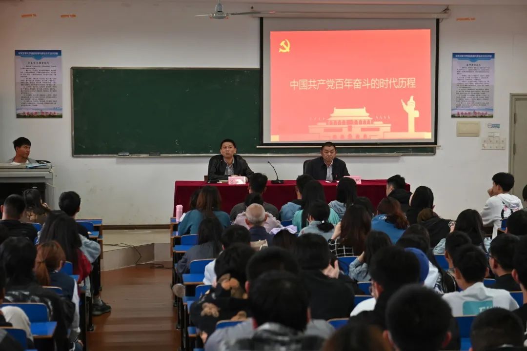 4月25日下午,全体辅导员、入党积极分子、员工骨干以及即将参加党史知识竞赛的同学,在公司312教室参加以《中国共产党百年奋斗时代历程》为题的党史学习教育专题党课,此次党课由公司党委副书记邱伟伟主讲,学工办主任潘永泉主持。