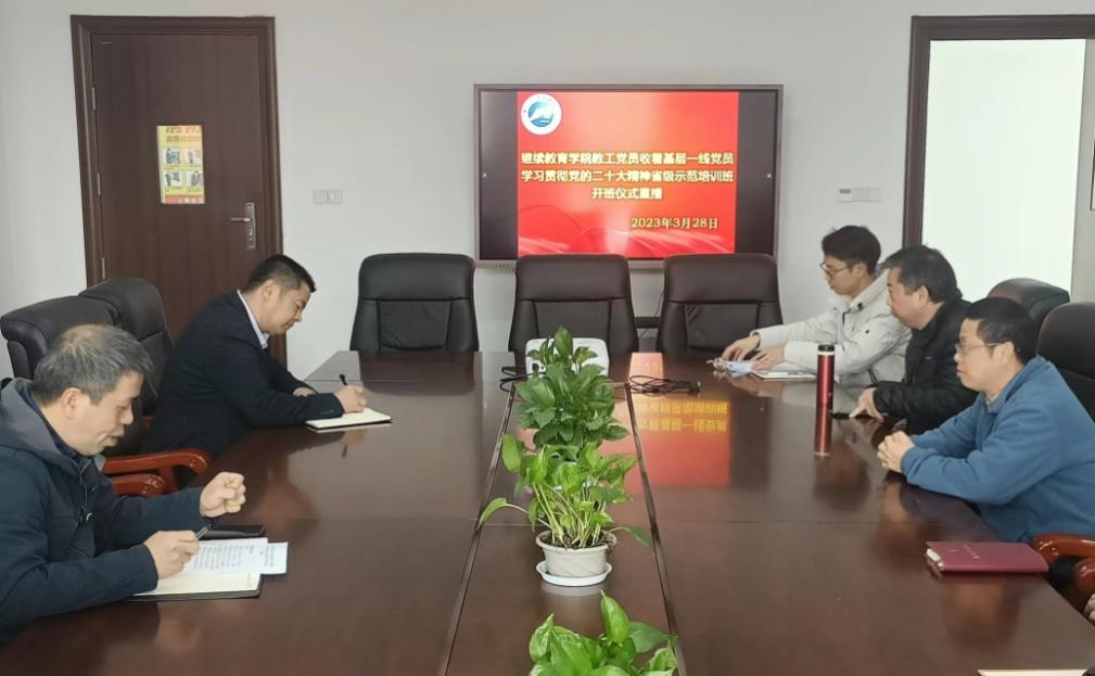 为认真学习贯彻党的二十大精神,组织好党员收看基层一线党员学习贯彻党的二十大精神省级示范培训班工作,进一步提高党员同志的政治站位,3月28日上午,公司组织教工党员收看基层一线党员学习贯彻党的二十大精神省级示范培训班开班仪式,会议由公司党委书记吴效葵主持,全院教工党员参加。