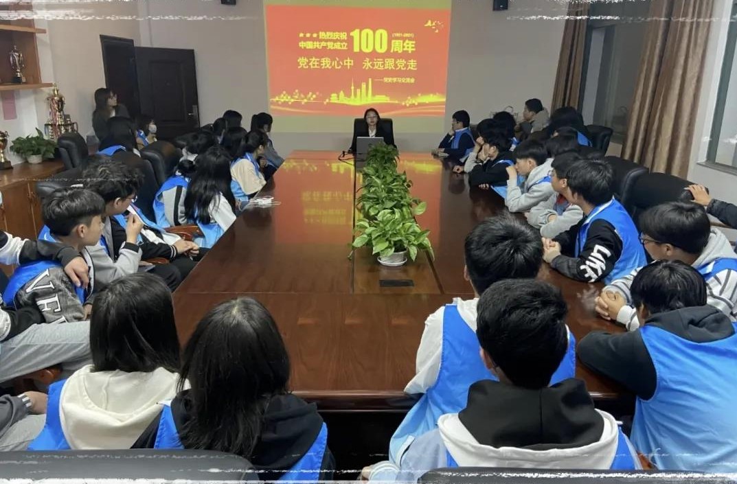 师生联合党支部轮值党员先锋黄飘飘同志为青年志愿者分享党史故事,激励并教育同学们。