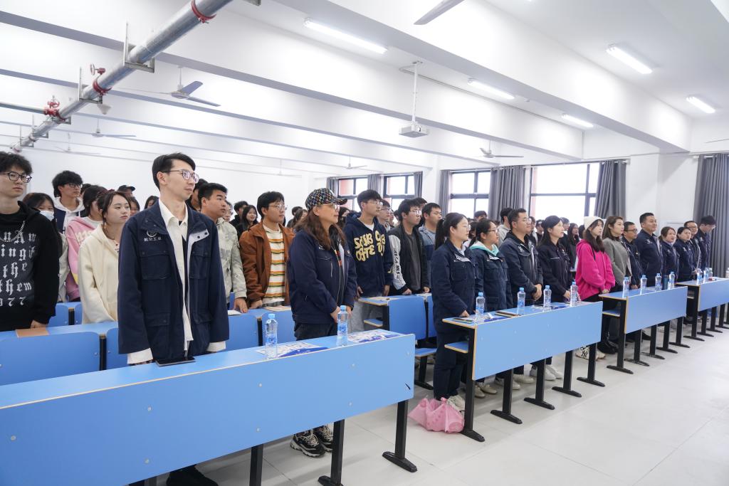 主持人朱烨对双方团委的基本情况、发展现状以及特色活动等方面进行介绍,增进彼此认识。随后,由团员代表李宛凝组织唱响团歌、重温入团誓词,回望入团初心。在嘹亮的团歌声中,团员们目光如炬,一字一句地感受蕴含在团歌背后无数革命先辈的峥嵘岁月,以此烙深每一位团员青年的身份意识,铭记作为一名共青团员应有的责任与担当。