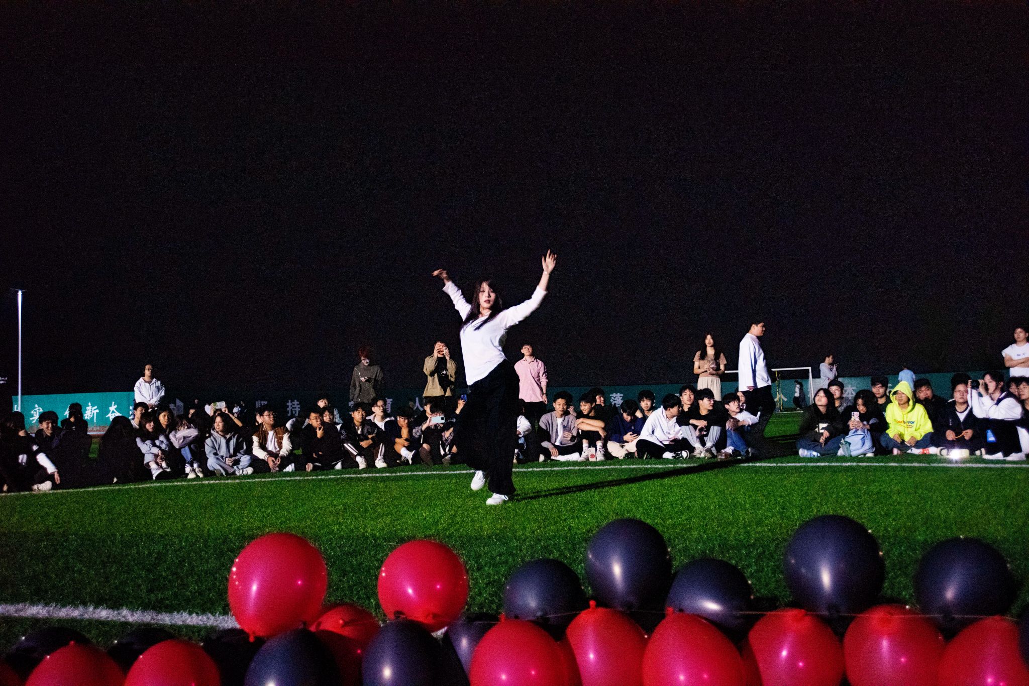 “你在台上闪闪发光,我在人海中为你点灯”,在初秋的夜晚,来自五湖四海的同学们以星光和晚风为伴,脸上洋溢着微笑,目光追随着草坪中央的同窗,手上高举着灯光,欢呼声接连不断,这不仅是同学们对音乐的热爱,更是在公司所得幸福感的表达。