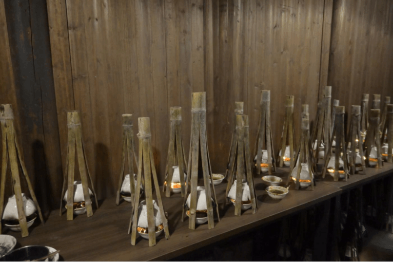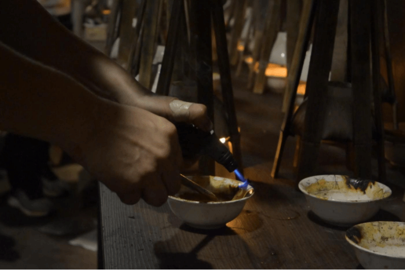 制墨是中国一项古老而独特的传统工艺。讲解员老师耐心地讲解到制墨首先需要烧烟,用小碗盛桐油,内用灯心草点燃,在无氧的条件下就燃起浓浓的烟以竹制架子架起大碗倒扣住,收集附着在碗壁上的黑烟,最后刷下收集墨粉。接着为使成品墨条带有各种各样的花纹和字画,制墨老师将掺杂复杂原料的墨条雏形进行反复敲打,再用特定的模具定型,最后放置阴凉处阴干。
