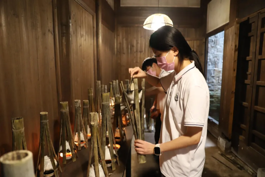 与非遗面对面,传承工匠精神。实践队于7月2日走进进贤县温家圳非遗制墨工艺,切身体验文墨制作工艺,感受非遗文化魅力。制墨是中国一项古老而独特的传统工艺。“墨块的制作有点烟、熬胶、杵墨、捶墨、称重、入模、定型、拆模、晾墨、修边、上蜡、描金等十二道工序,一十二道工序不可或缺。只有经历千锤万杵,成就‘一两徽墨一两金’。”讲解员老师说道。在现代社会的发展中,文化自信和传统文化的传承变得愈发重要。实践队队员们在调研过程中,深入了解乡村振兴和新时代背景下传统文化的继承与发展。他们对非遗制墨的重要性有了更深入的认识,同时希望通过自己的努力,为保护和传承中华优秀传统文化作出贡献。