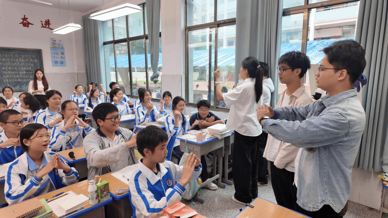随后,团员代表集体向同学们表演了《我爱你中国》手势舞,并进行分组教学。通过新颖有趣的手势舞形式,诠释歌词、讲述故事,将青春活力与团组织精神相融合,展现了青年员工的蓬勃朝气和奋发向上的精神风貌,传递了对祖国的美好祝愿和对未来的无限憧憬。
