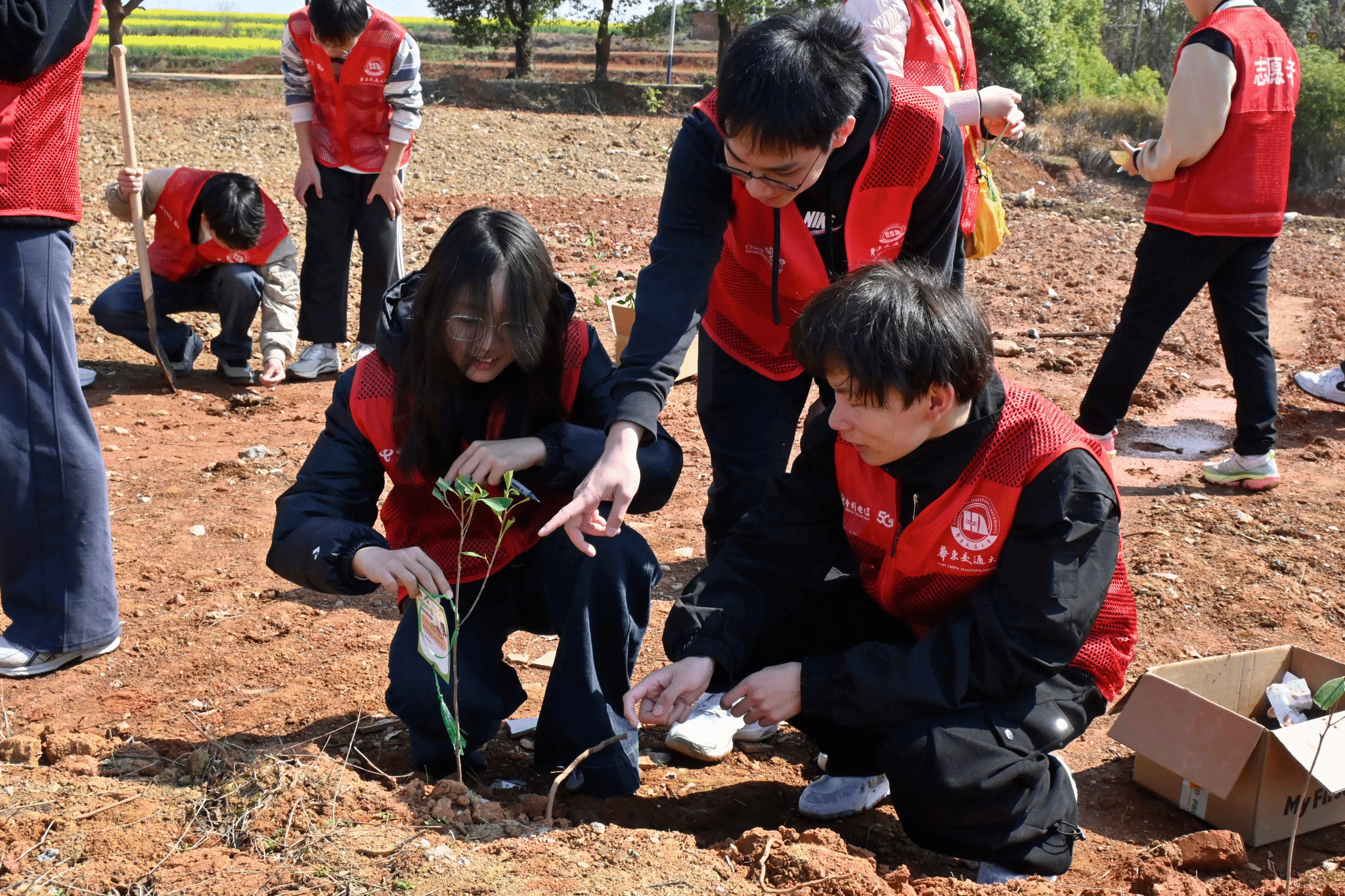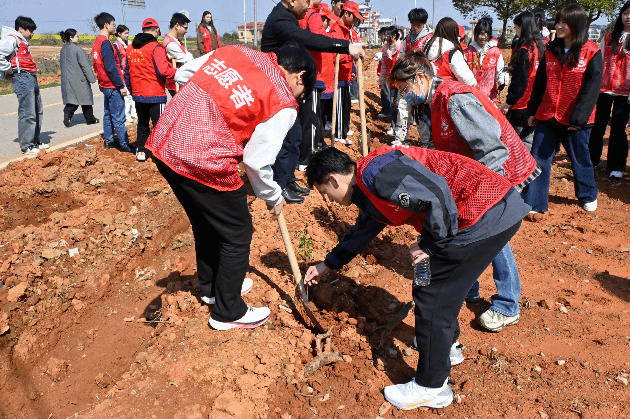 活动当天,志愿者们怀揣着饱满的期盼与热情,早早集合在活动场地接受专业指导,专业人员详细地为大家讲解了植树的要点和注意事项。从如何挖坑、放置树苗,到填土、浇水,志愿者们认真记下每一个步骤,为投入到书写春天诗行的行动之中做好充分准备。
