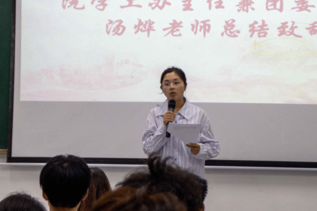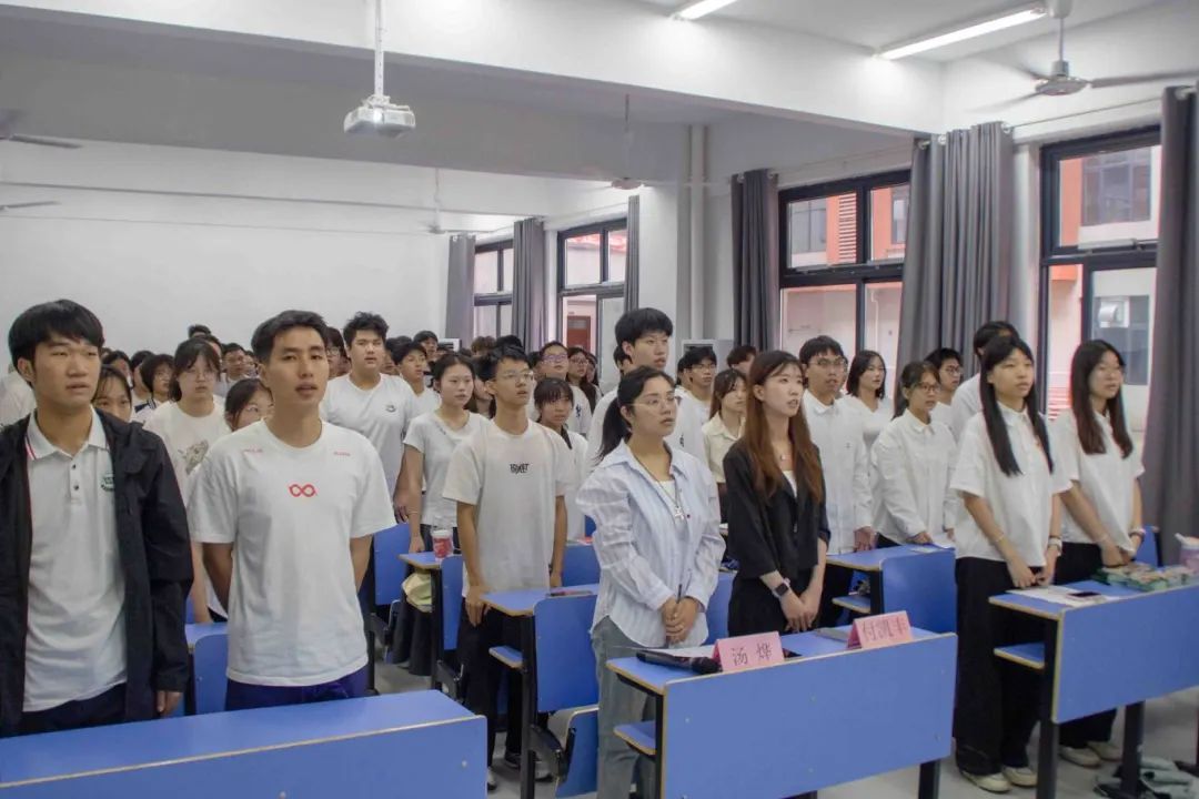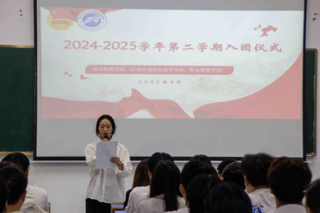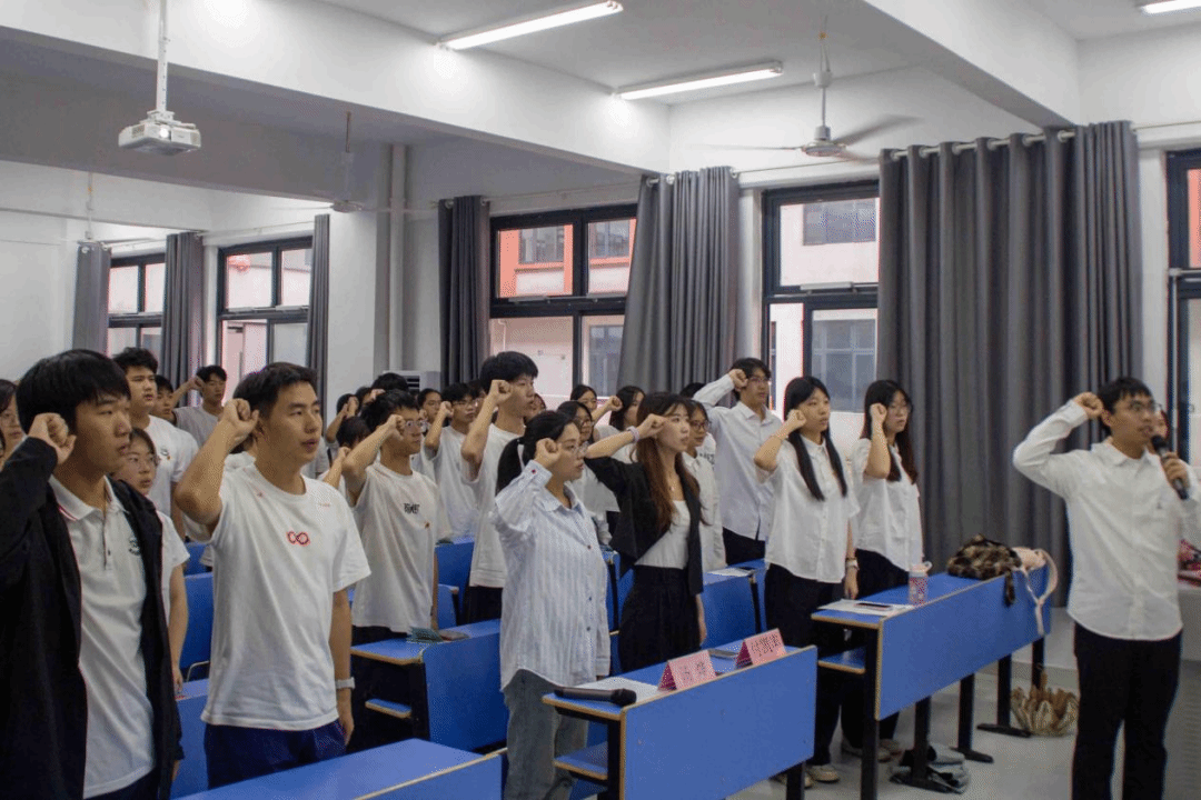 汤烨老师对新团员提出殷切期望:希望大家坚定信念,以党的思想为指引,树立远大志向,让青春航向与国家发展同频共振,争做理想引领者;坚持勤学善思,以“求真学问、练真本领”为目标,在知识积累中厚植成长根基,勇当本领锻造者;积极践行担当,主动投身社会实践,用实际行动诠释“请党放心,强国有我”的青春誓言,甘为时代奉献者。
