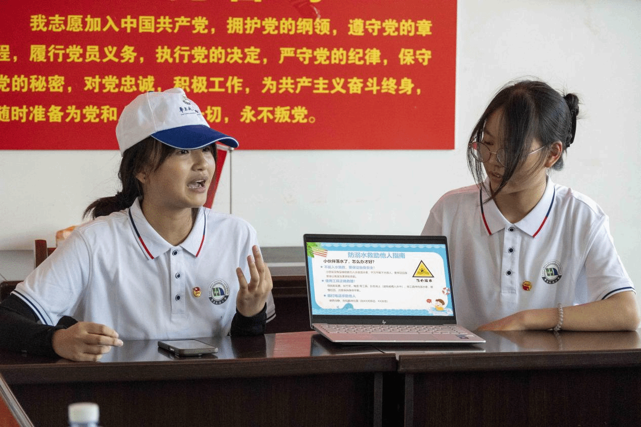 活动伊始,实践队队员化身安全讲师,以生动有趣的防溺水动画作为课程导入,迅速吸引孩子们的注意力。队员们结合制作精良、图文并茂的PPT课件,从溺水的严重危害、常见溺水场景分析、科学预防措施等方面展开系统讲解。为增强教学效果,实践队创新采用互动式教学方法,通过设置趣味问答的环节,引导孩子们积极参与课堂。对于踊跃发言的孩子,队员们及时给予小奖品作为鼓励,有效激发了孩子们的学习热情,让安全知识真正入脑入心。