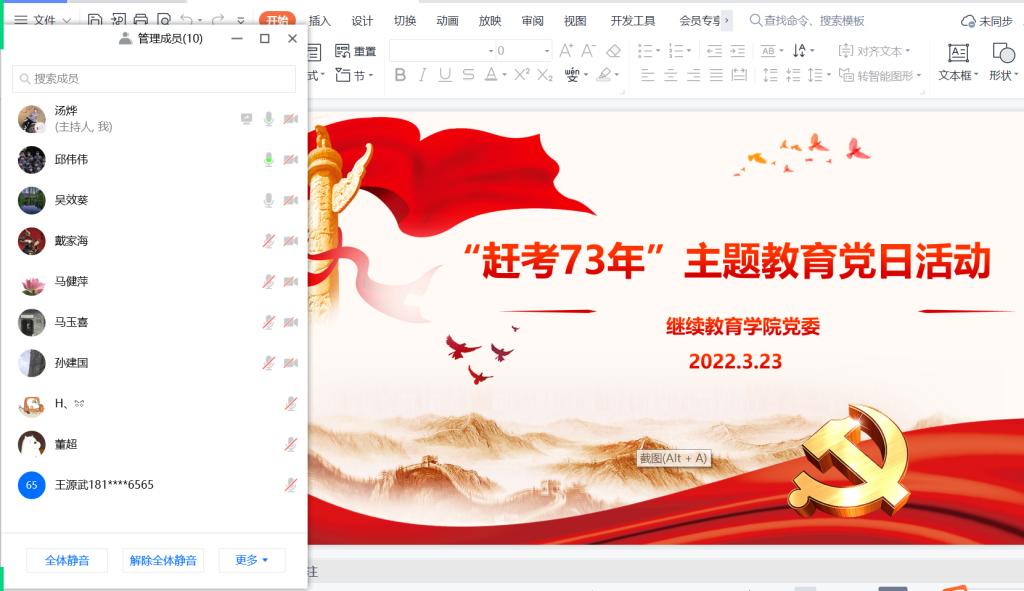 根据公司党委组织部的相关部署和要求,公司党委于3月23日通过公司党委理论学习中心组和党支部集中学习两个层面,分别在线上腾讯会议室开展了“赶考”73年主题教育主题党日活动。
