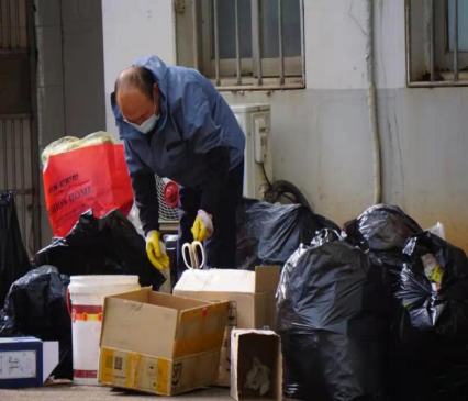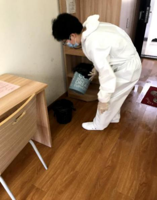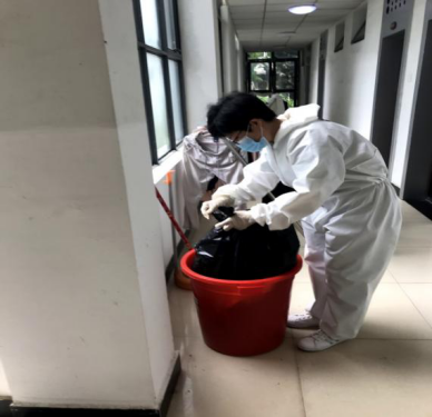 在“隔离师生”离开后,工作人员要做好房间清理、更换卧具与消杀、送餐、消杀、垃圾清运等工作。至今,回收隔离人员产生的垃圾高达5000余次。