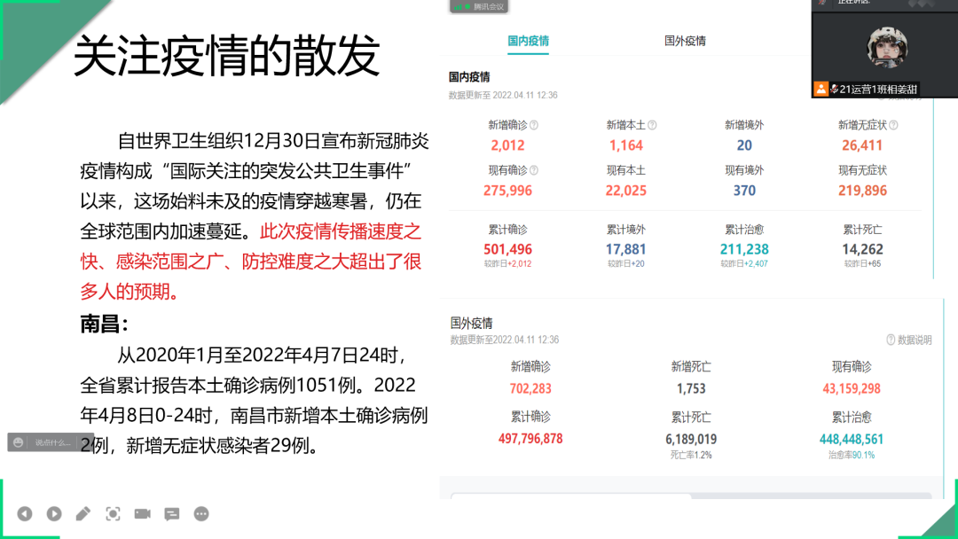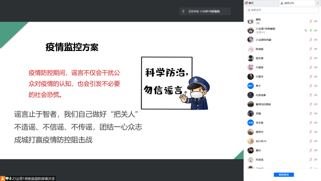 4月15日晚,公司世纪英才开展本学期第四次理论课,全体成员采用线上的方式学习了本次以“抗击疫情"为主题的理论课。旨在让英才学员们学习对于疫情防控的知识。