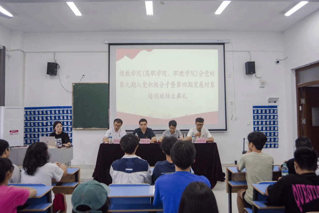 6月26日下午,继教公司(高职公司、职教公司)分党校第九期入党积极分子暨第四期发展对象培训班结业典礼顺利举行。党委副书记陈小建、党委组织员毛丽素、员工党支部书记黄姚逸出席结业典礼。会议由陈彦波主持,培训班全体学员参加。