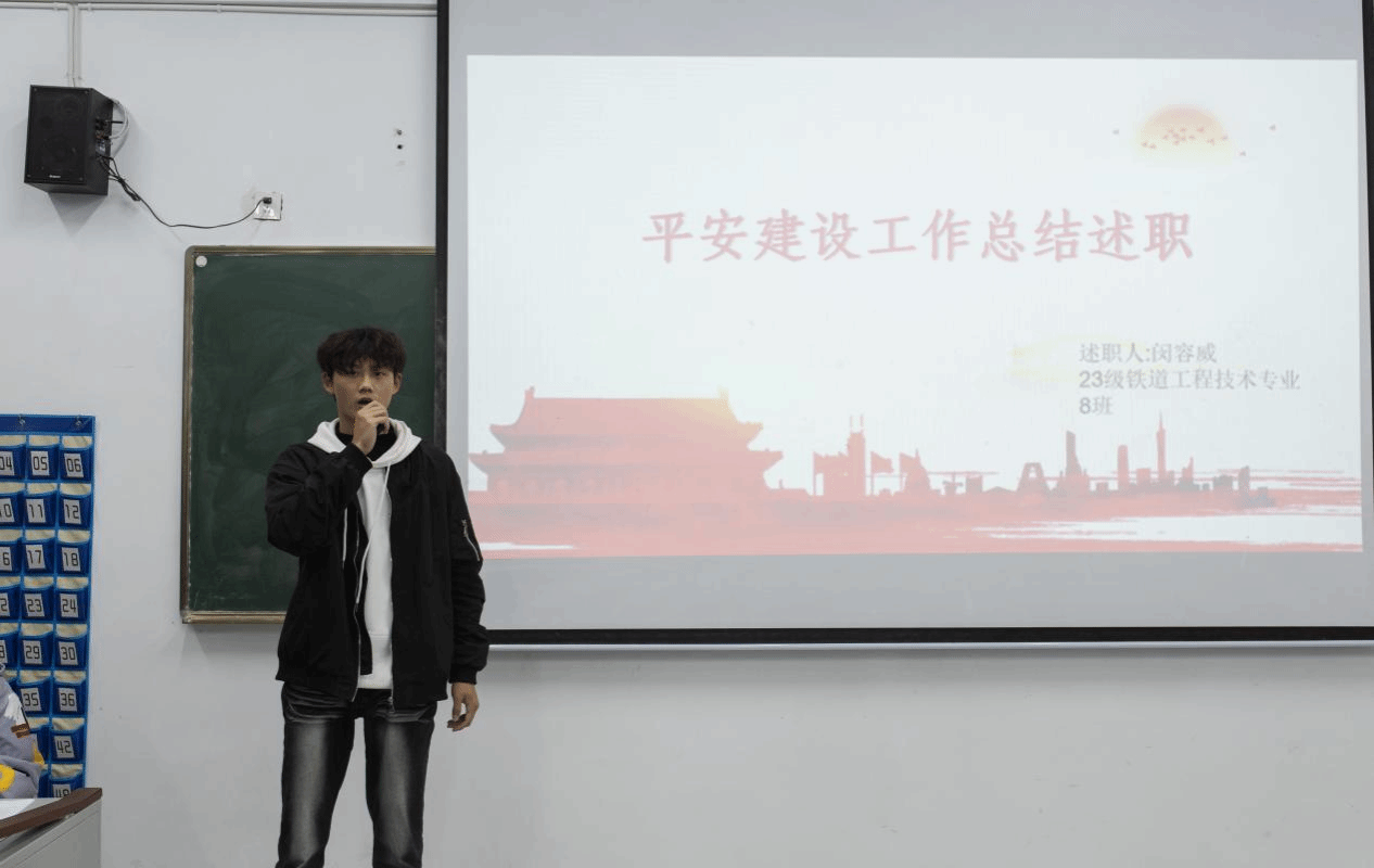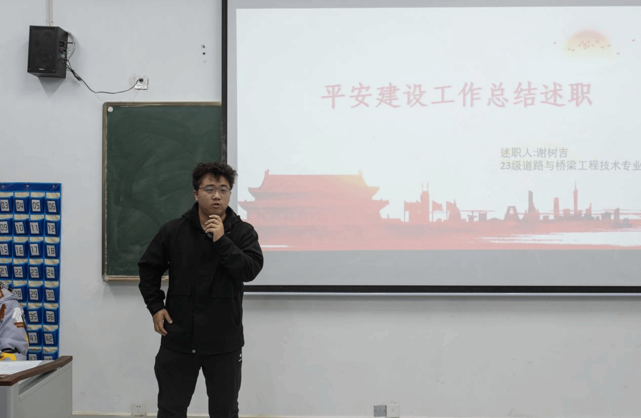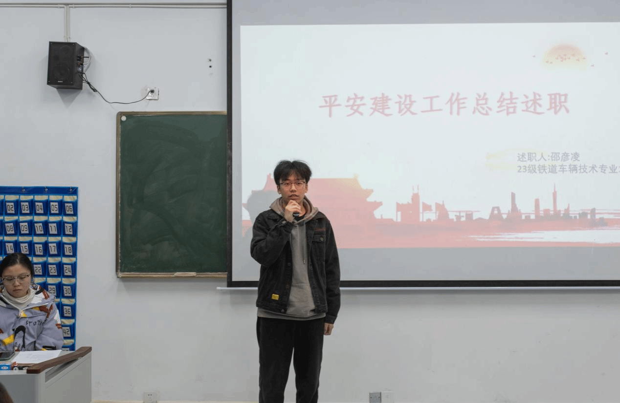 各班班长依次上台进行述职,他们结合本班级的具体情况,详细汇报了安全教育主题班会、消防演练活动等各项安全工作的开展情况和取得成果。各班班长不仅展示了自身班级在平安建设工作中的特色和亮点,也汇报了存在的不足和面临的困难。