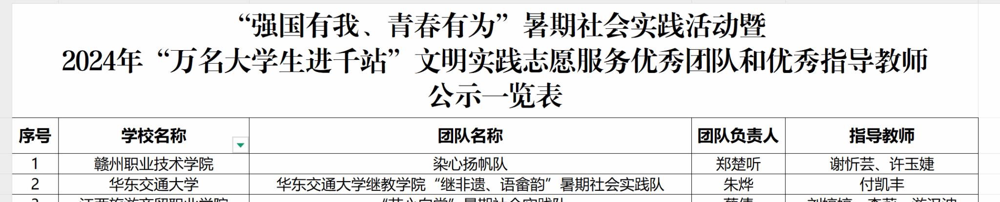 近日,江西省教育厅根据《关于组织开展“强国有我、青春有为”暑期社会实践活动暨2024年“万名老员工进千站”文明实践志愿服务行动的通知》工作安排。经高校推荐、省教育厅审核以及专家评审,拟确定“强国有我、青春有为”暑期社会实践活动暨2024年“万名老员工进千站”文明实践志愿服务行动多项奖项。公司荣获优秀实践成果1项,优秀团队和优秀指导教师1个。