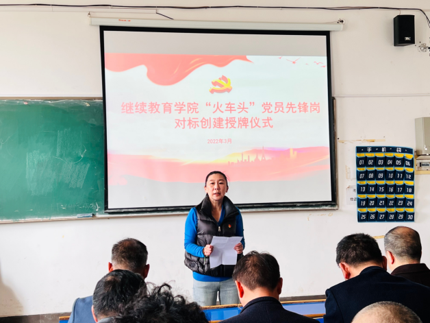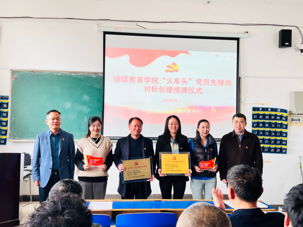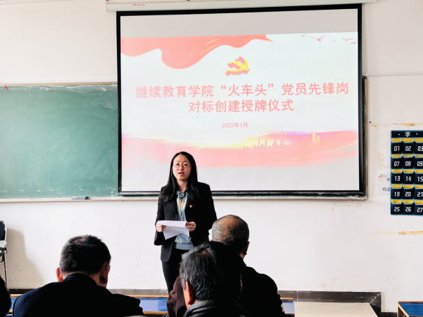 活动伊始,经理孙建国宣读“火车头”党员先锋岗对标创建名单。随后党委书记吴效葵、经理孙建国分别为获得“火车头”党员服务、育人先锋岗的个人及集体代表颁发流动标牌并合影留念。