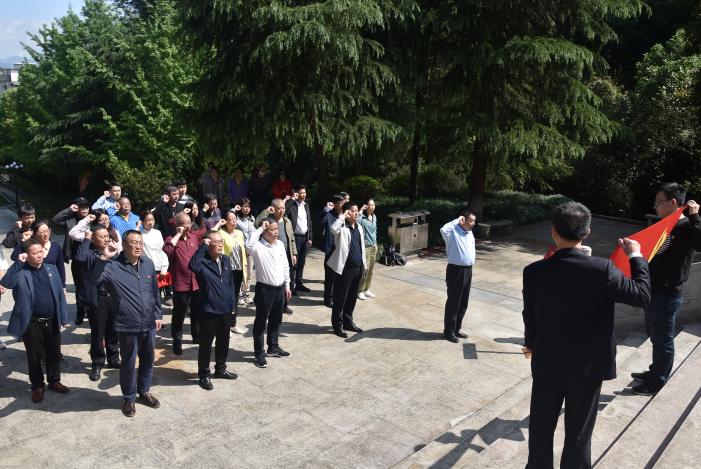 在湘鄂赣革命烈士陵园,全体党员来到革命烈士纪念碑前敬献花篮,公司党委书记胡桃元缓步上前,认真整理花篮上的绶带。随后,党员们整齐列队向革命先烈默哀1分钟,并由公司党委副书记邱伟伟带领全体党员在革命烈士墓前面向党旗庄严宣誓,重温入党誓词。
