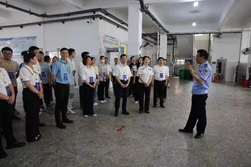 灰墙高耸,重门深锁,沉静肃穆的氛围扑面而来。在狱警的引导和讲解下,公司师生党员先后参观了服刑人员教育日活动、服刑人员监舍、劳动习艺车间、服刑人员食堂、服刑人员文化教学和职业技能教学等场地。通过狱警讲解和现场观看,师生不仅身临其境,而且“心”临其境,“沉浸式”体验这堂深刻又直观的“警示教育课”。